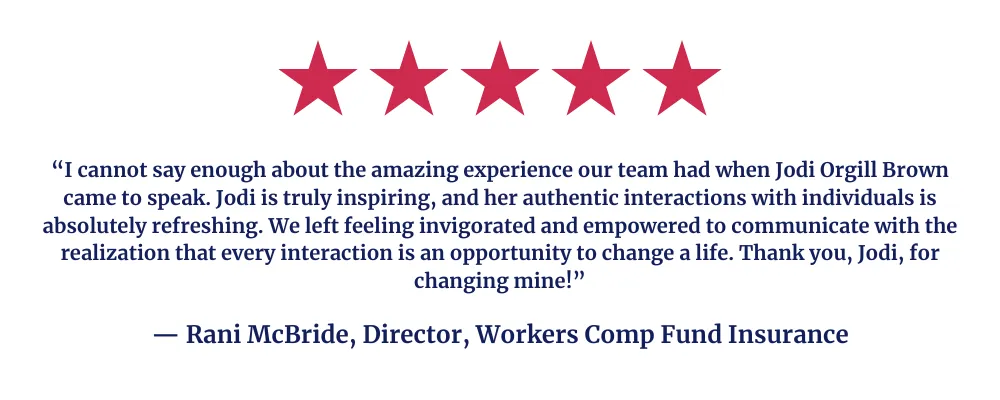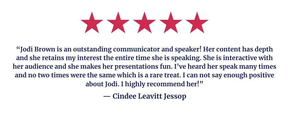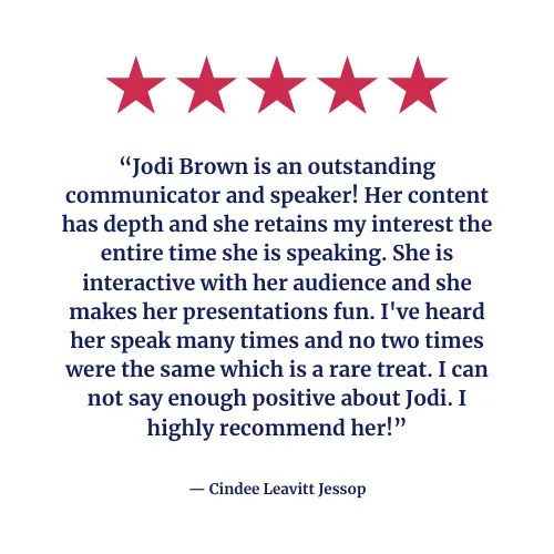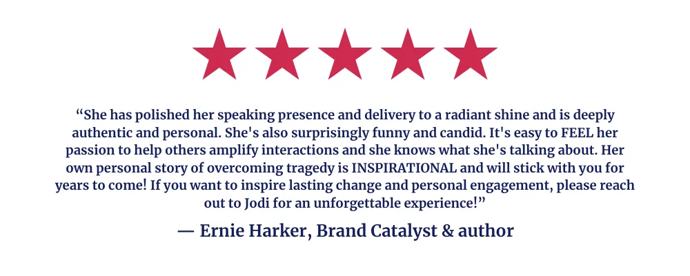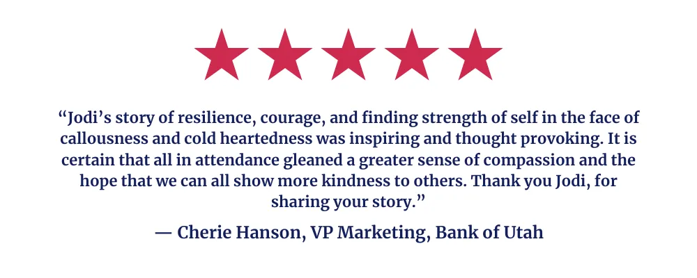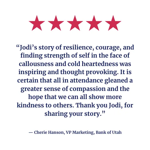 Jodi delivers powerful keynotes that blend personal stories with practical strategies. Helping audiences face challenges with courage, adaptability, and connection.